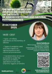 The third webinar of WGIN’s post-conflict research group on the impact of military aggression in Ukraine on agroecosystems and natural phytocoenoses will take place on the 31st of October at 14:00 CEST.